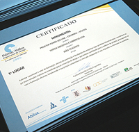 Trabalho realizado: Criação do logotipo, peças promocionais como regulamento, banners, convite para prêmiação, certificados, selo, apresentação dos premiados, folder entre outros.